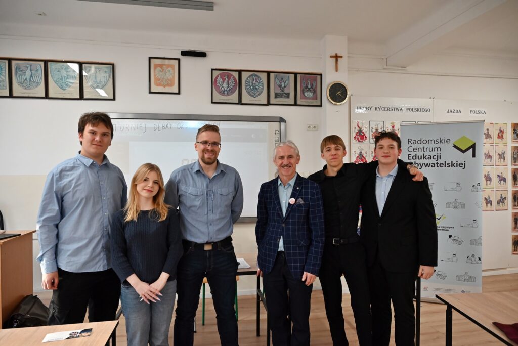 W czwartek 4 grudnia 2025 r. odbył się w naszej szkole Turniej Debat Oksfordzkich zorganizowany we współpracy z Radomskim Centrum Edukacji Obywatelskiej (RCEO). Do turnieju zgłosiły się drużyny z 6 klas: 1e, 2e, 3e, 4e, 3a i 4 a. Zespoły najpierw debatowały w dwóch grupach, w systemie każdy z każdym, do tezy: „Patriotyzm jest obowiązkiem obywatela”. W finale, w którym spotkali się zwycięzcy grup, debacie poddano tezę: „Wolność słowa ma granice”. Klasa 4e broniła tezy jako propozycja  a  4a była w opozycji.